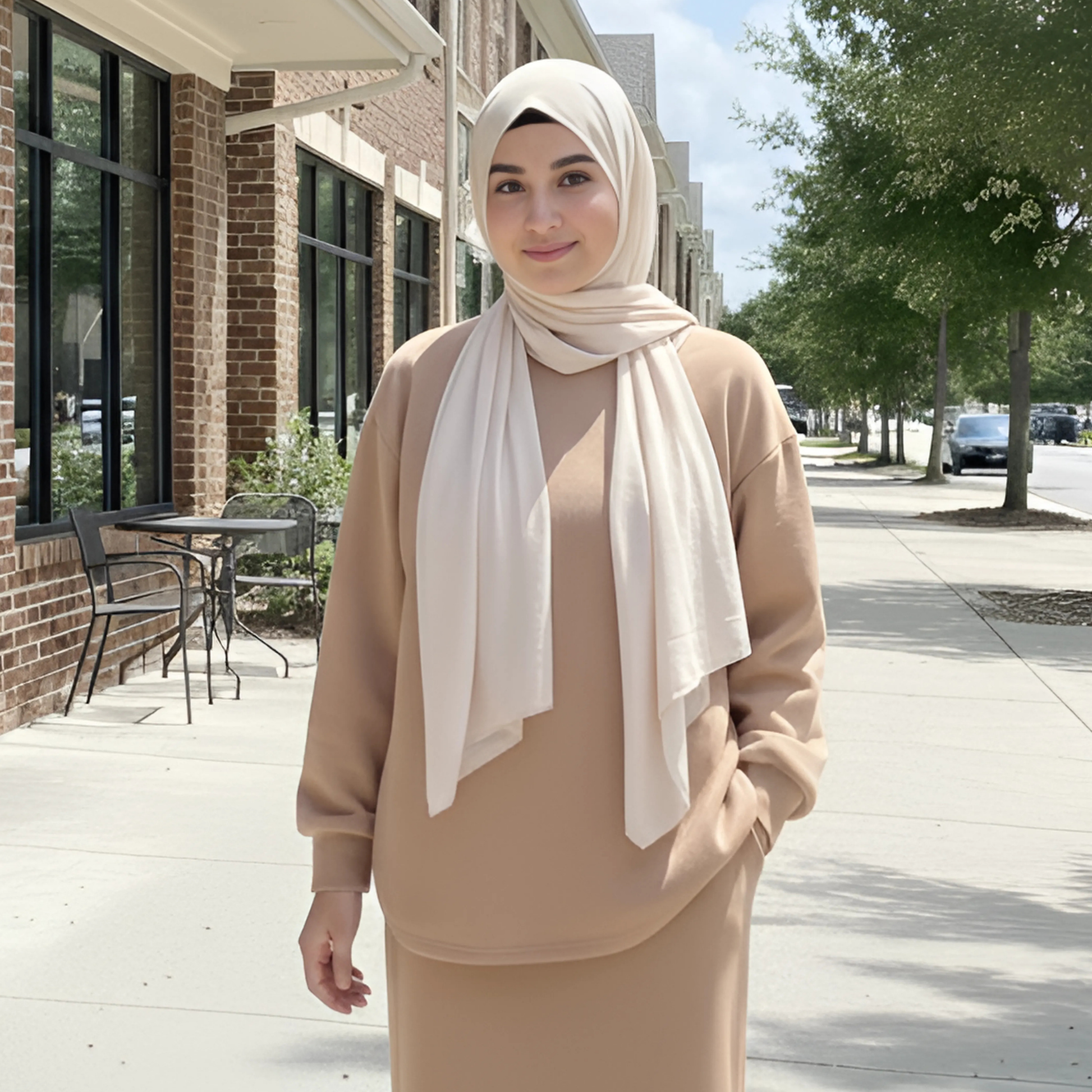 Complete the look with the matching maxi skirt, available now on Veilinista. Together, they create a coordinated winter set that’s stylish, modest, and cozy.
